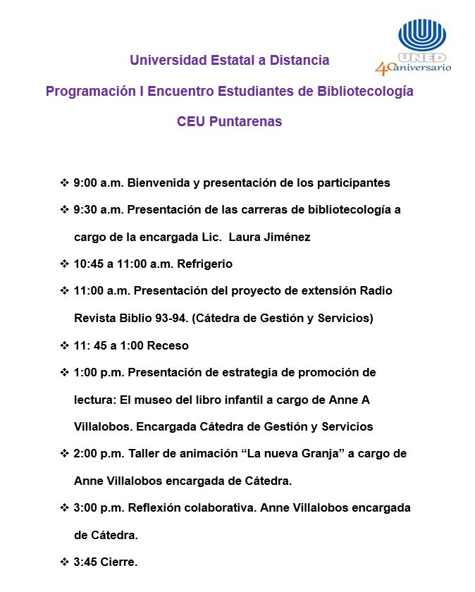4. I Encuentro de Estudiantes de Bibliotecología- CEU Puntarenas- Día del Libro