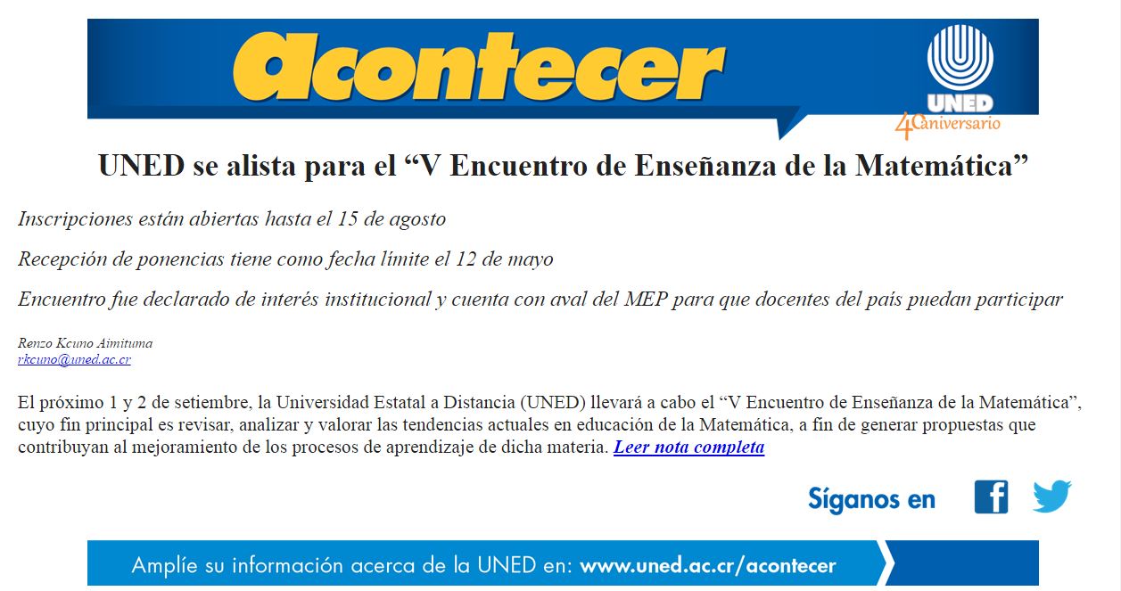 4. UNED se alista para el “V Encuentro de Enseñanza de la Matemática”
