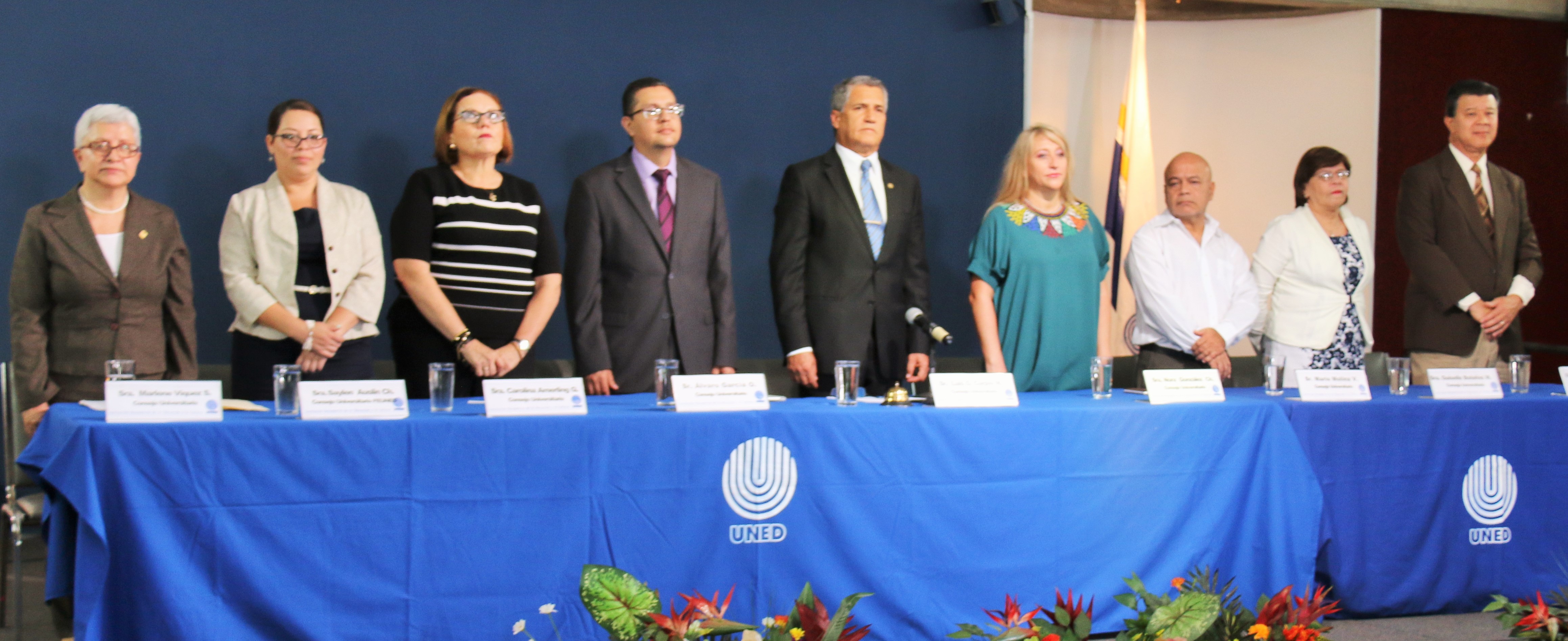 En un acto presidido por el Consejo Universitario y con la concurrencia de una numerosa cantidad de funcionarios, Luis Guillermo Carpio, rector de la UNED y presidente del órgano colegiado, manifestó: “conmemoramos el noveno año de haber recibido el Benemeritazgo, en un momento crucial para la universidad pública costarricense, un momento en que la sociedad trata de repensarse”.