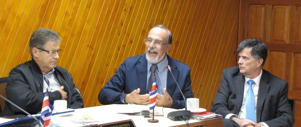 Francisco Barahona Riera, Wálter Coto Molina y Álex Solís Fallas, miembros del Comité Nacional del Ciudadano por una Nueva Constituyente, visitaron el Consejo Universitario de la Universidad Estatal a Distancia (UNED) para dar a conocer su proyecto, que persigue, como fin último, instaurar una nueva constitución política para el país.